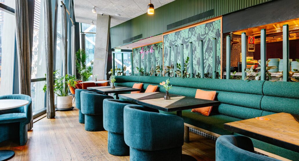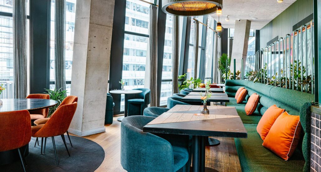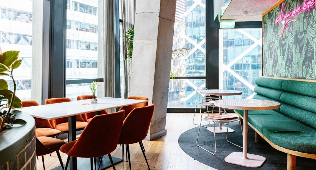 This intimate semi-private space looks over the streets of Barangaroo and is the perfect indoor space for a casual get together. The space includes a mix of standing and casual lounge seating for you and your guests.