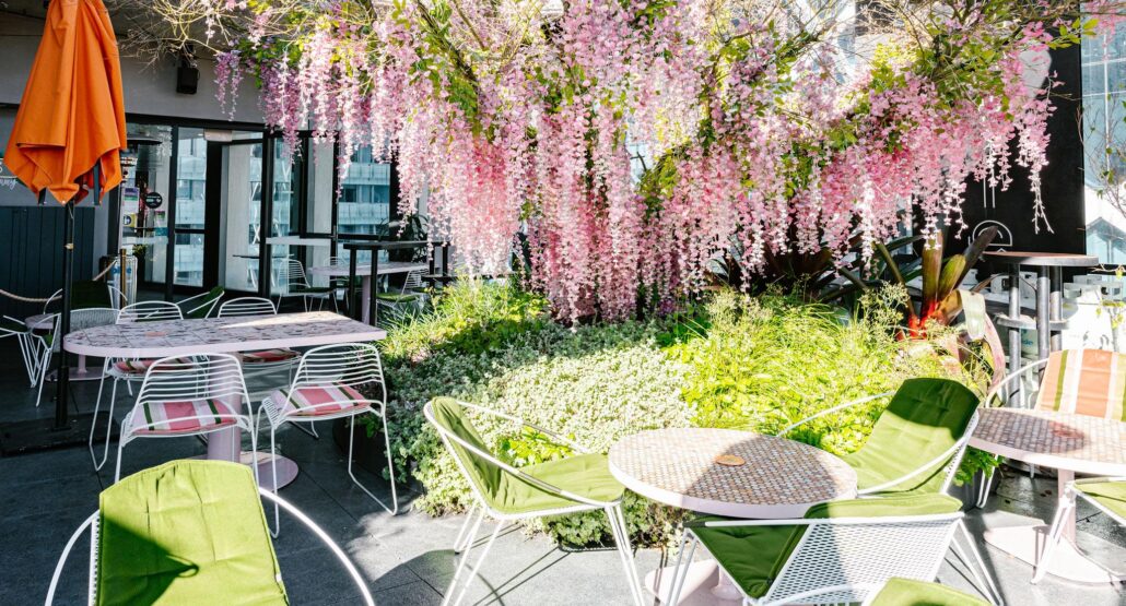 One of our most popular semi-private spaces, the Southern Courtyard focal point is the stunning Maple Tree, perfect for after work drinks!